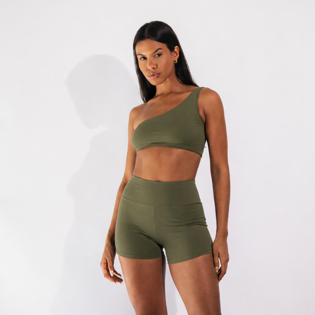 O top ombro só possui modelagem assimétrica criando um visual marcante, valorizando a silhueta com elegância e oferecendo sustentação confortável para treinos e atividades do dia a dia. O ajuste firme mantém tudo no lugar, permitindo movimentos fluidos e seguros.