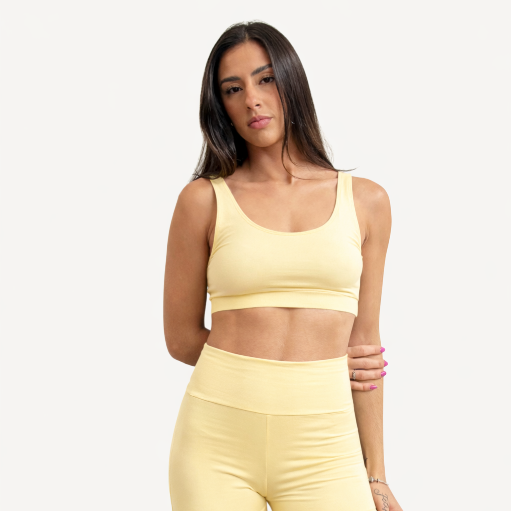 Nosso top regata possui modelagem confortável, com alças largas que garantem sustentação e liberdade de movimento durante suas atividades.